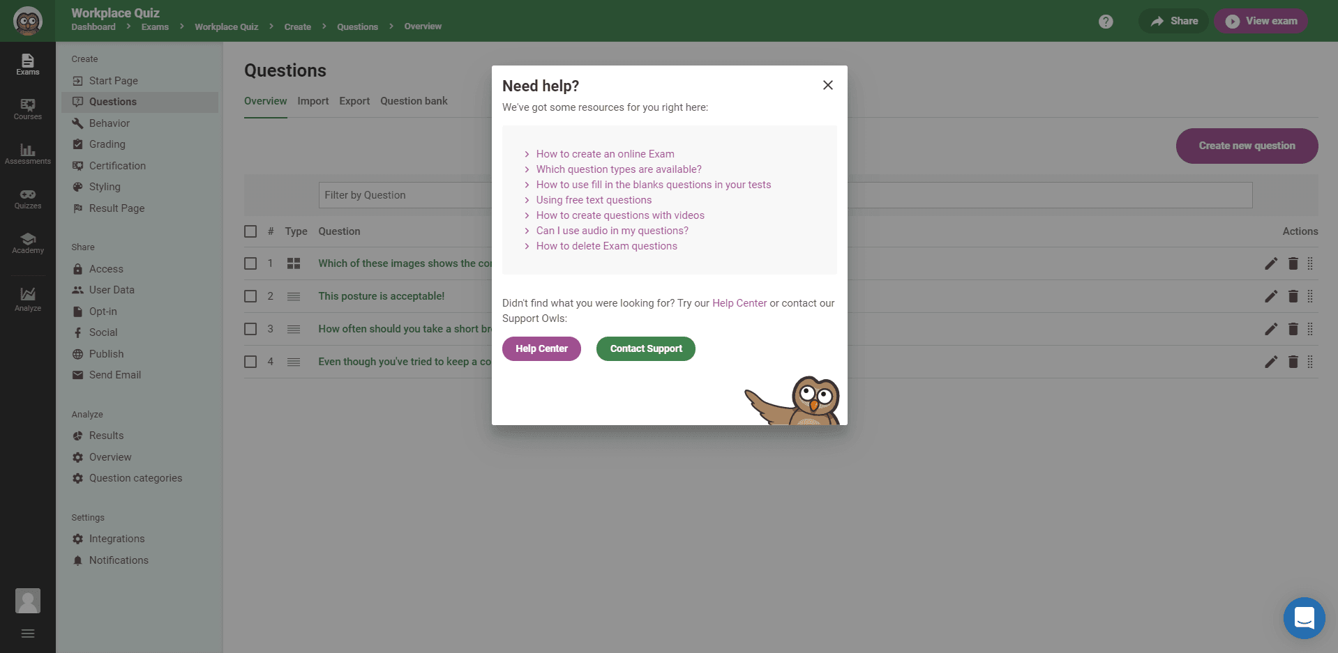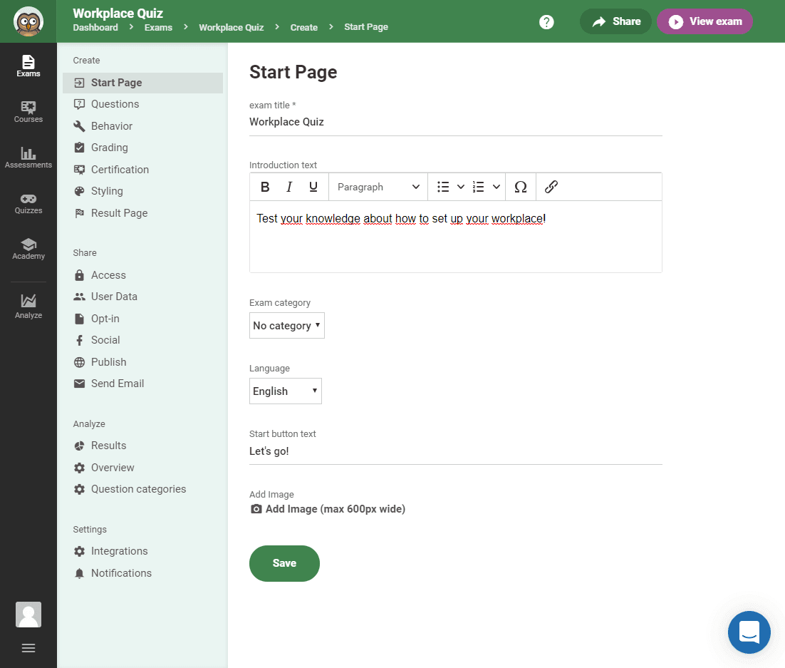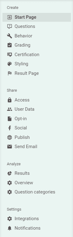 This is where we started splitting up the tasks into three main categories: Create, Share, and Analyze. This way, we don’t distract you with tasks you don’t need. After all, if you’re still creating questions for your exam, you’re not interested in checking the results just yet. We help you focus on the job you need to do. We don’t want to show information you don’t need.