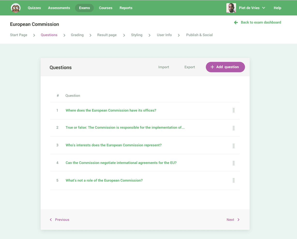When we first redesigned our old dashboard, we made a wizard in which you could create an exam. We provided a step-by-step interface that followed the sequence we came up with. The steps were in a logical order. When you walked through the wizard, in the end, an exam was ready and made! Cool, isn’t it?