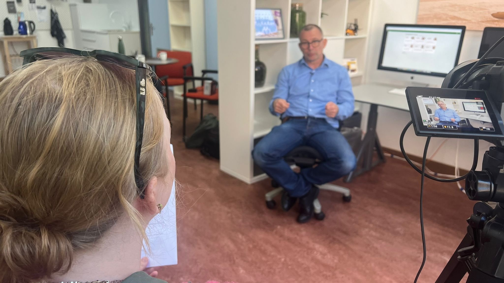 The day started with coffee and introductions. Then, the video equipment was set up, and the interview commenced! Erik enjoyed the process, and lots of smiles and laughter were exchanged. A colleague of Erik’s took photos and videos of the filming process for their company marketing.