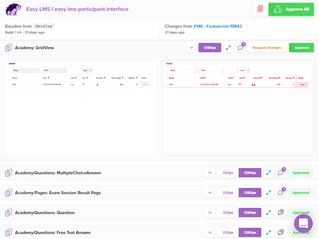 Recently we introduced our new academy interface. During development, we started using some new techniques to help us improve our workflow, and maintain a high quality standard for our product. We prevent bugs from happening by working in a component-driven way, and testing often for unintended visual changes (visual regressions).