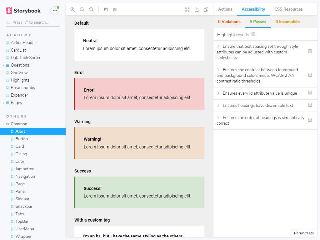 Accessibility checking in Storybook