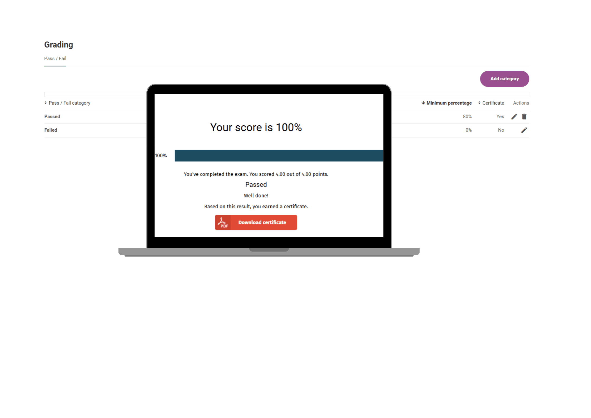 Complete the loop with certificates. Plus, by tracking exam completion times, you have everything you need for compliance, CPD training, and annual renewals.