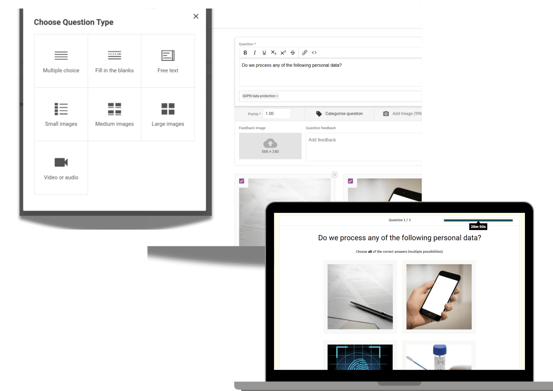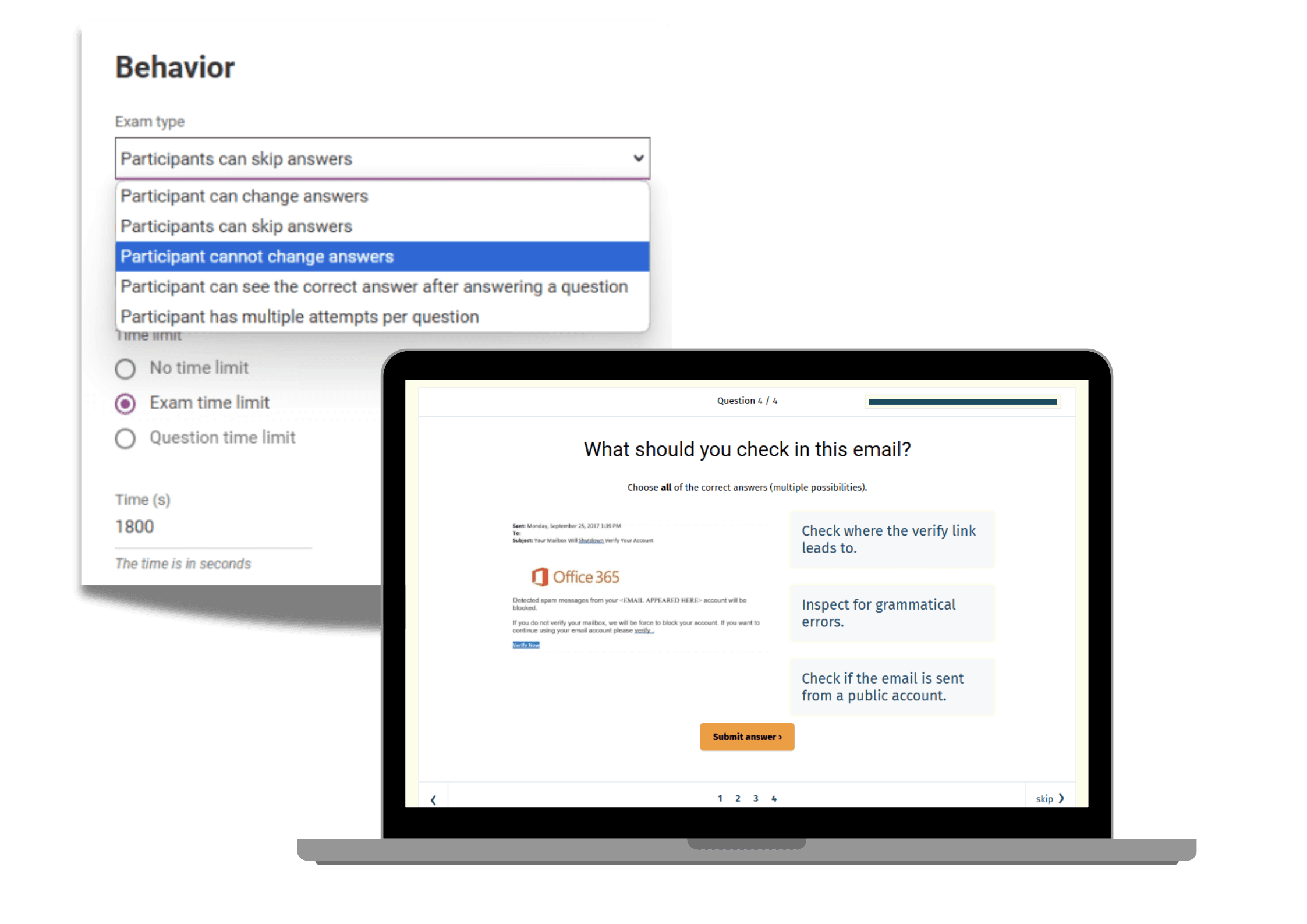 Our exam builder takes care of time-consuming tasks like grading, generating randomized tests, and sending certificates, freeing you to focus on what matters most!